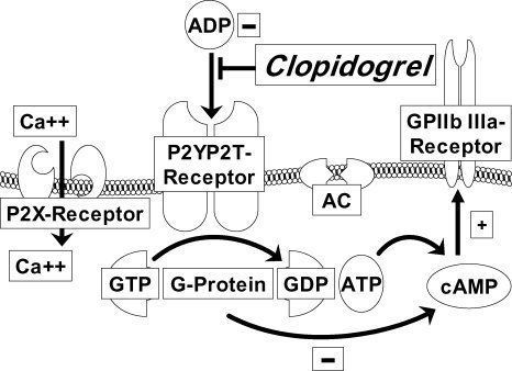 АДФ также имеет свой рецептор. Именно этот механизм является основой действия некоторых лекарственных веществ. Клопидогрел (Исковер, Плавикс) и тиклопидин, ингибиторы активации тромбоцитов, АДФ-зависимо тормозят рецепторы P2Y12. Клопидогрел чаще всего назначают пациентам с коронарной недостаточностью и облитерирующими артериитами, особенно после успешного стентирования. Известная вам ацетилсалициловая кислота ингибирует циклооксигеназы, о которых речь пойдет ниже, а абциксимаб, тирофибан и эптифибатид ингибируют гликопротеиновый рецептор IIb/IIIa напрямую, а не опосредованно, как это делает клопидогрел.