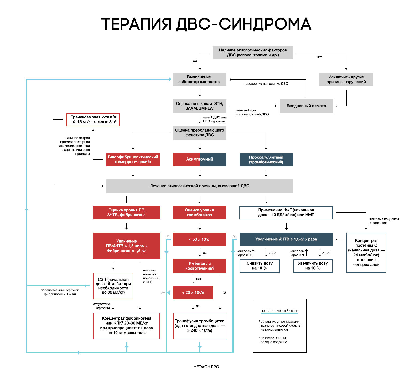 Рисунок 7 | Алгоритм тактики ведения пациентов с ДВС-синдромом (авторская работа Medach)
