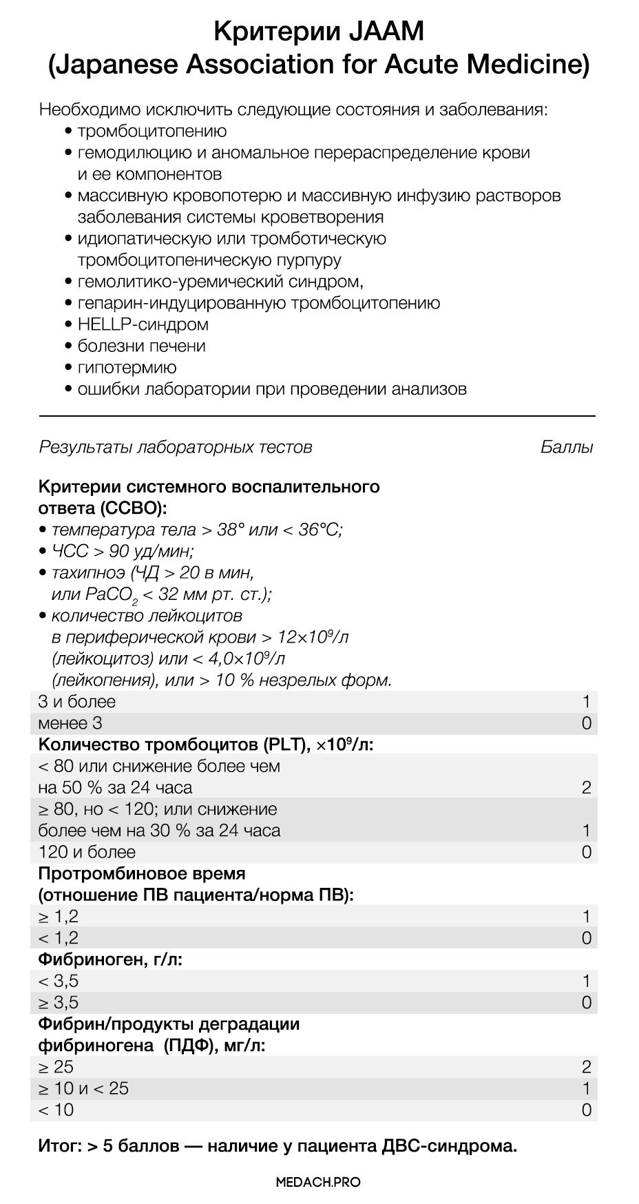 Критерии Japanese Association for Acute Medicine (JAAM):