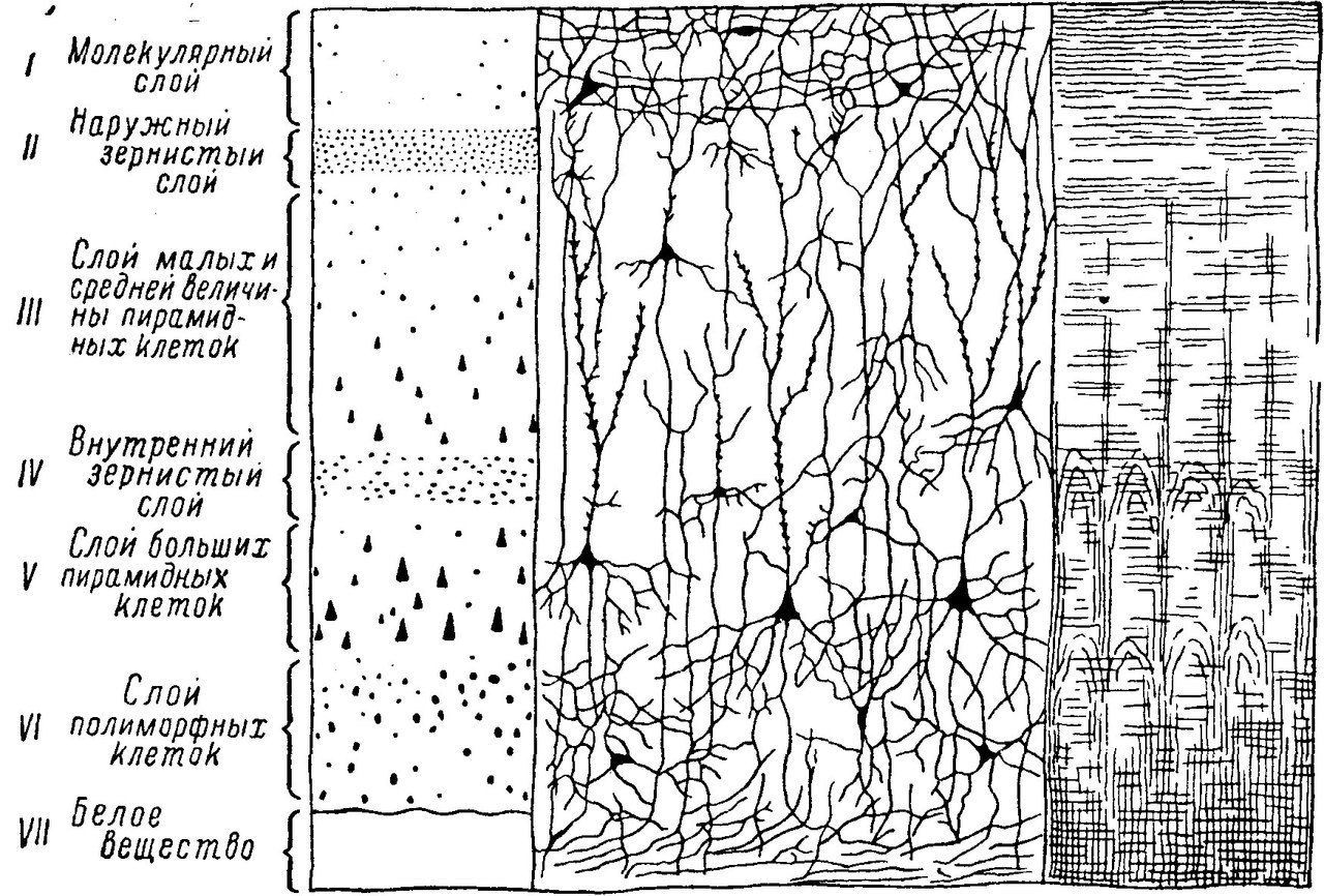 Ядра двигательного анализатора находятся в предцентральной извилине (ПИ), а также в задних отделах средней и нижней лобных извилин. Передача импульса осуществляется по волокнам пирамидных путей, берущих начало от клеток Беца (пятого слоя коры головного мозга).