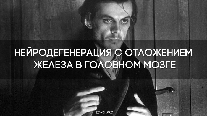 В 1922 году два ученых из Германии, Юлиус Галлеворден и Гуго Шпатц, занялись изучением следующего клинического случая: в семье из 12 человек у пяти сестер наблюдались прогрессирующая деменция и дизартрия. Данные аутопсии показали, что в многочисленных областях головного мозга ткани были окрашены в коричневый цвет. В частности, интерес представляла окраска в области чёрной субстанции и базальных ядер. Описанное заболевание получило название синдрома Галлевордена — Шпатца и было под ним известно вплоть до недавнего времени, пока не была установлена роль исследователей в проведении экспериментов над заключенными в нацистской Германии, после чего эпоним сменили на нейродегенерацию с отложением железа в головном мозге (Neurodegeneration with brain iron accumulation, NBIA).