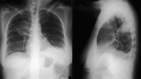 Рентгенография органов грудной клетки позволяет обнаружить затемнения или узелки в легких (в 75% случаев),узловатые и билатерально расположенные инфильтраты, которые крайне редко осложняются формированием асептической полости, затемнения симметрично расположены по периферии, признаки плеврального выпота.