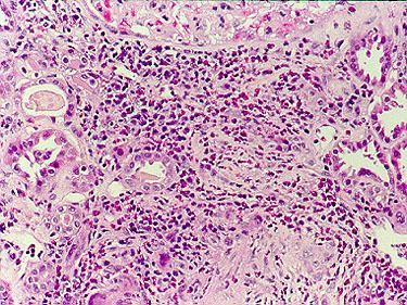 Результаты биопсии пораженных периферических нервных волокон свидетельствуют о том, что при эпиневральном некротизирующем васкулите начинают численно преобладать активированные цитотоксические Т-лимфоциты (CD8+ цитотоксические Т-клетки и CD4+ Т-хелперы) над эозинофилами, включая и воспалительный экссудат. Иногда в воспалительном экссудате обнаруживаются CD20+ (В-лимфоциты), возможно, также определение иммуноглобулина Е (IgE) и антител к C3d.