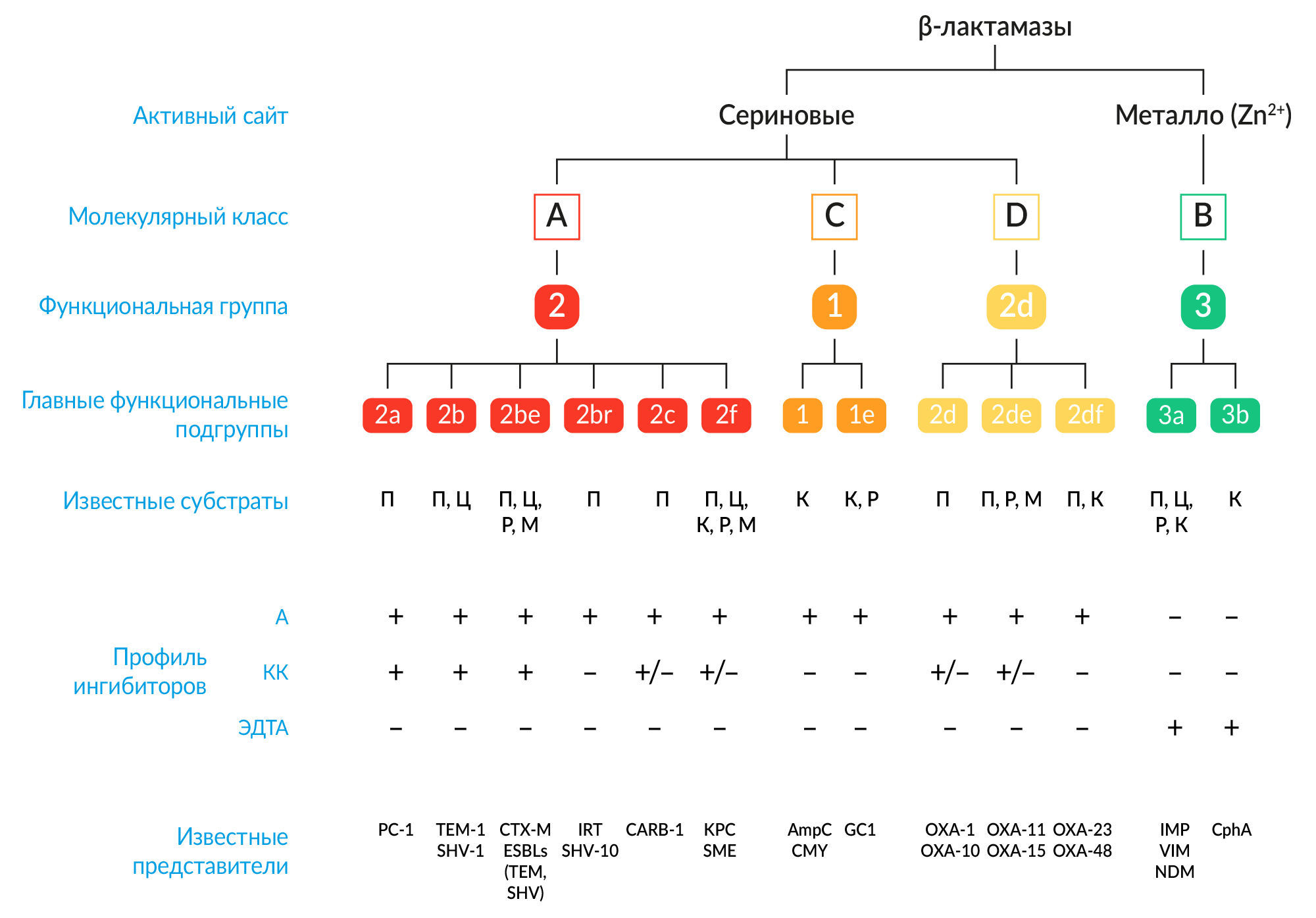 Рисунок 1 | Молекулярная и фунциональная классификации бета-лактамаз.