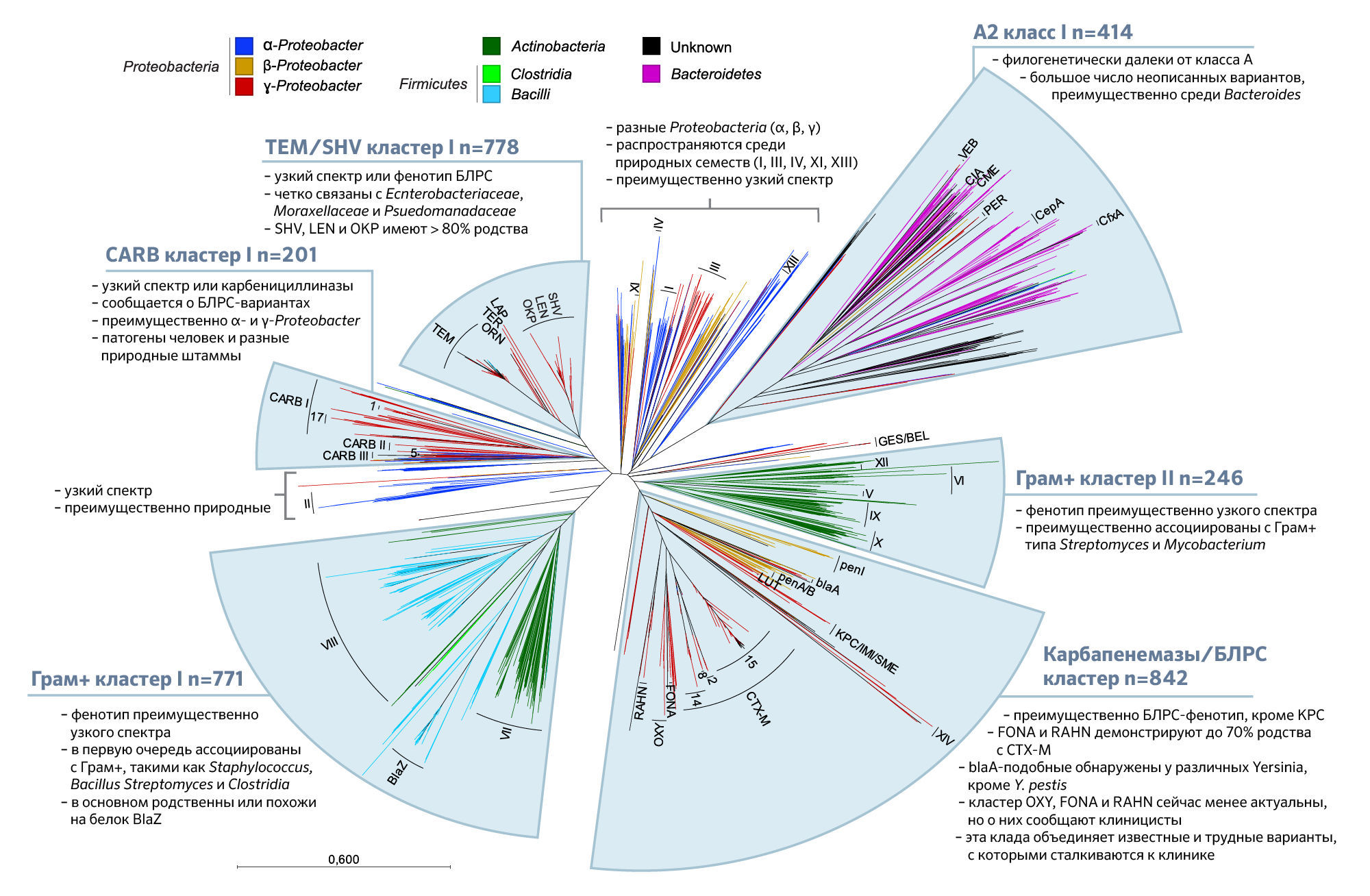 Рисунок 1 | Молекулярная и фунциональная классификации бета-лактамаз.