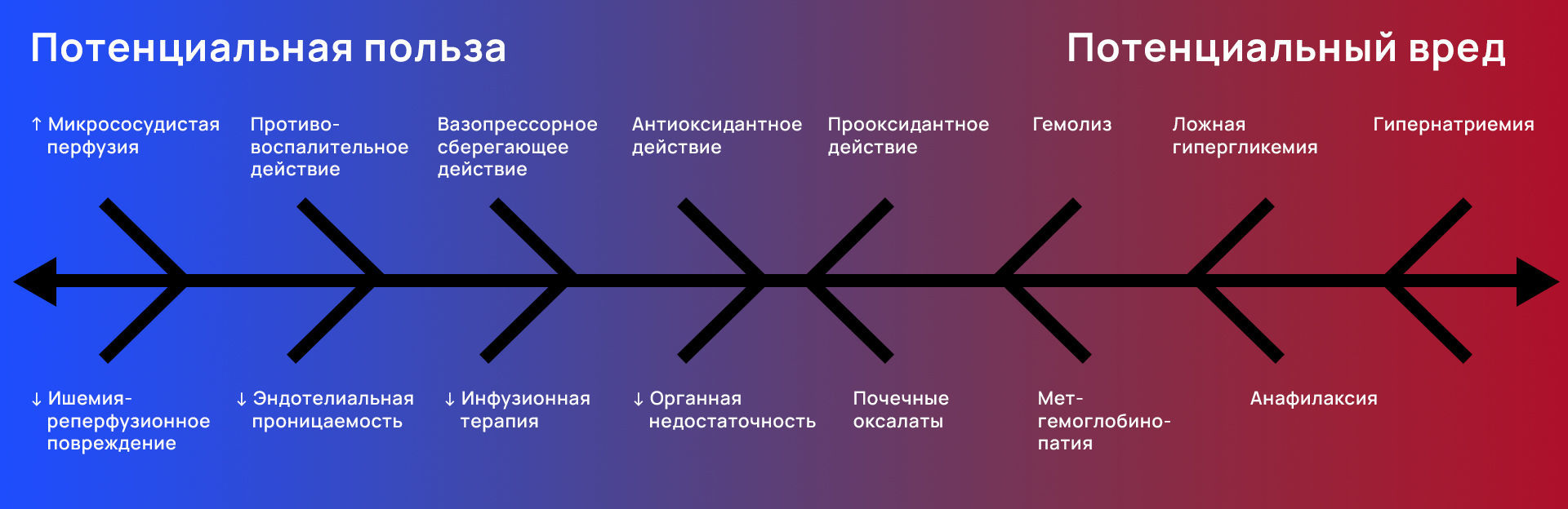 Рис. 2 | Потенциальные преимущества и потенциальный вред от применения витамина С при жизнеугрожающих состояниях (схематично)