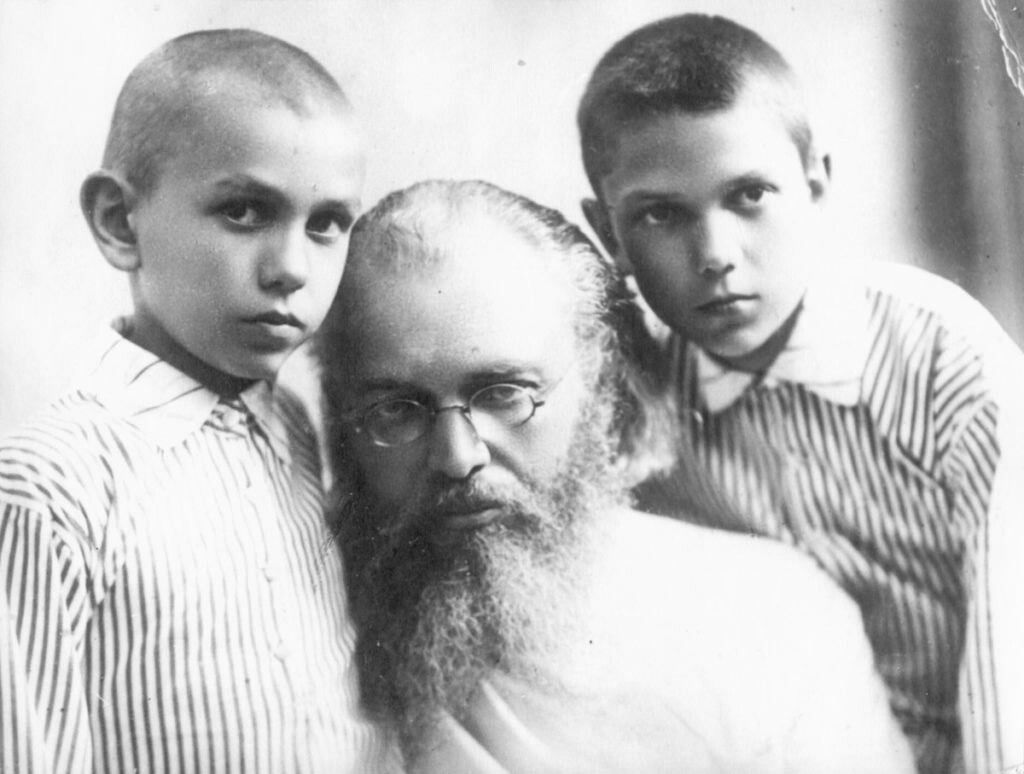 После смерти жены с сыновьями Валентином и Михаилом в Ташкенте, 1919 год.