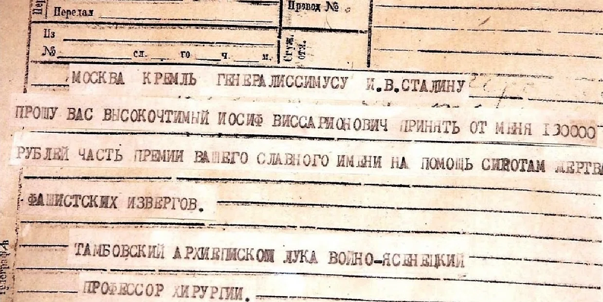 Телеграмма архиепископа Луки Иосифу Сталину, 1946 год. Фото: Центр наследия свт. Луки Феодоровского монастыря